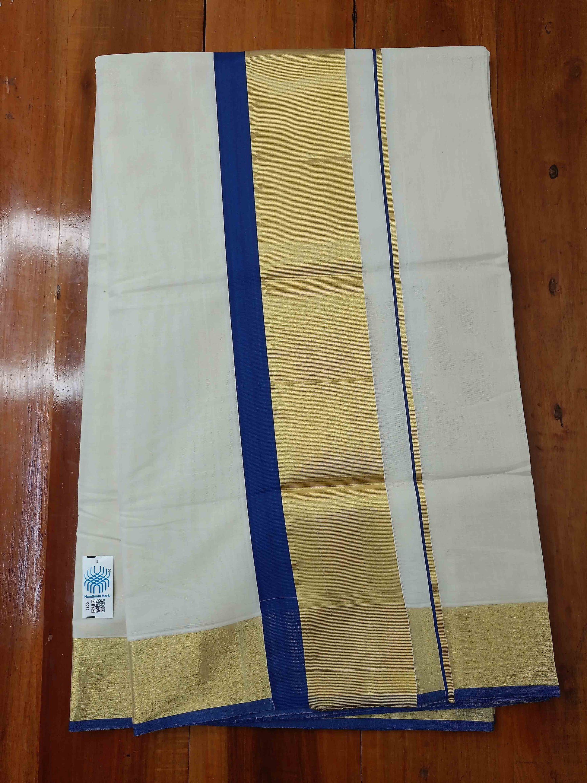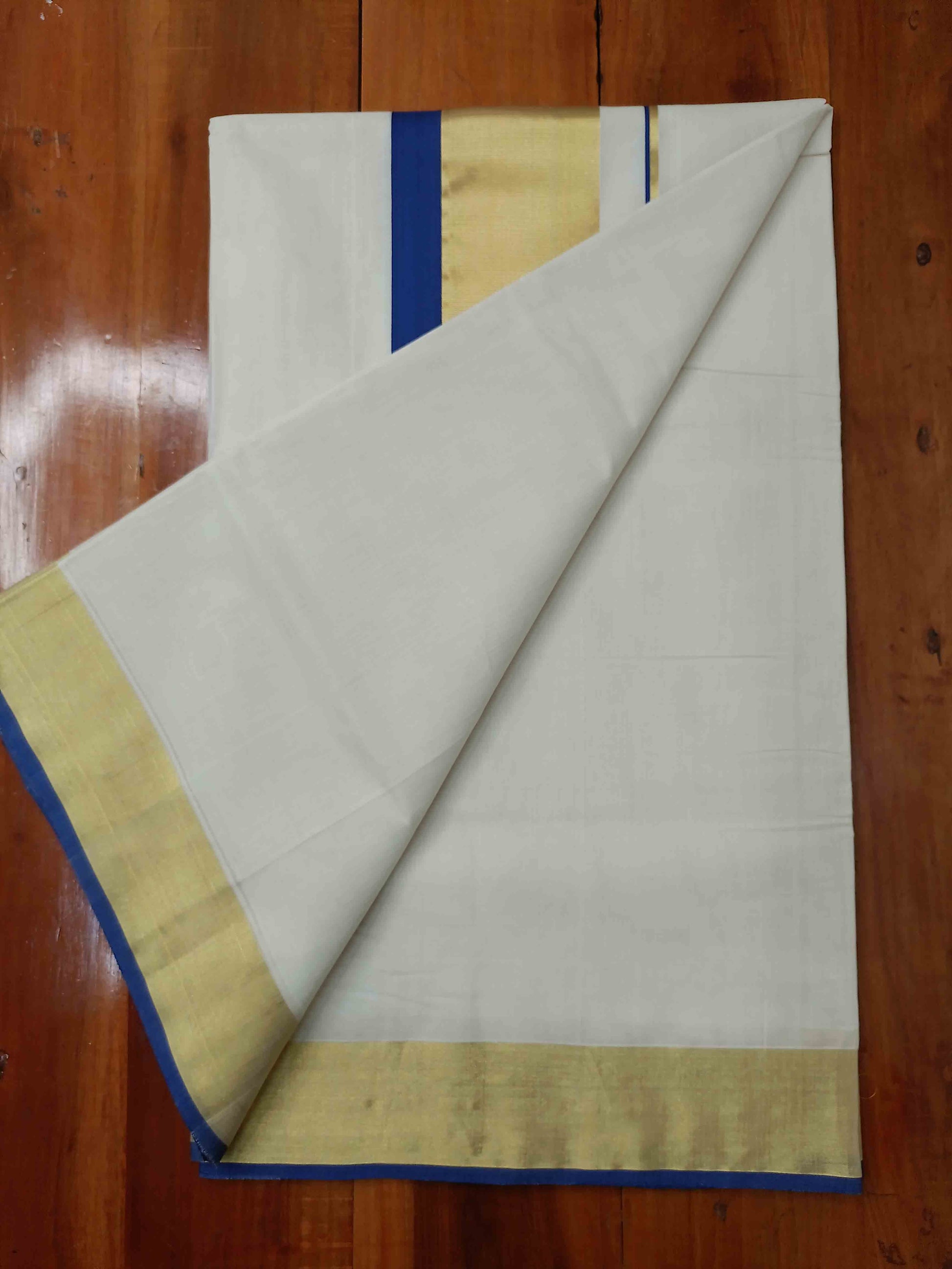 Kerala Saree Balaramapuram Handloom with Blue & Gold Colour