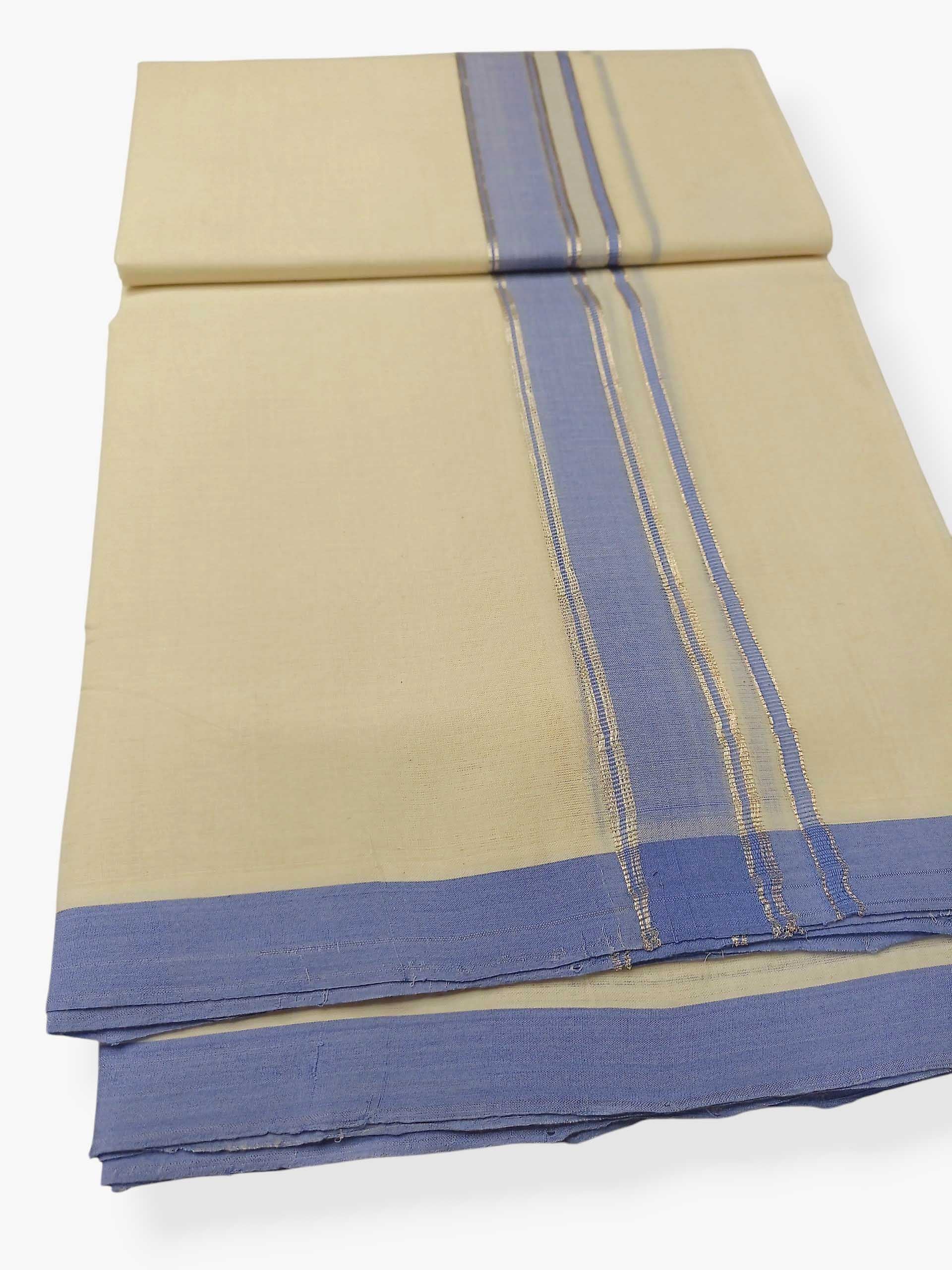 Balaramapuram Handloom Double Mundu Pure Cotton with Blue Border
